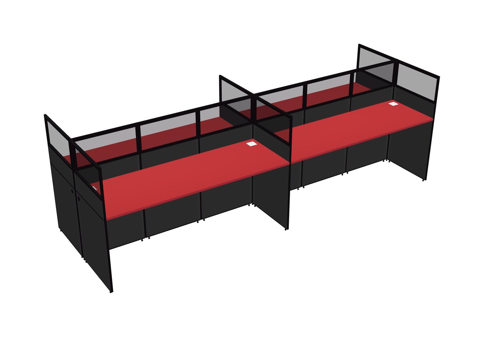 Prism Red Shared Rectangular Office Cubicle Panel System For 4 Persons