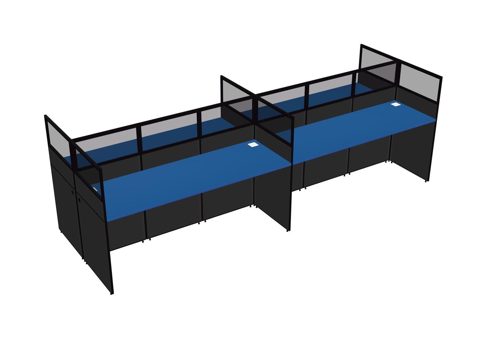 Prism Blue Shared Rectangular Office Cubicle Panel System For 4 Persons