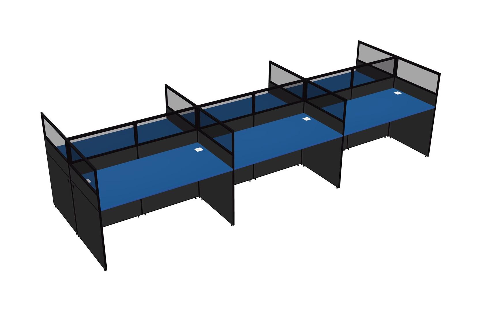 Prism Blue Shared Rectangular Office Cubicle Panel System For 6 Persons