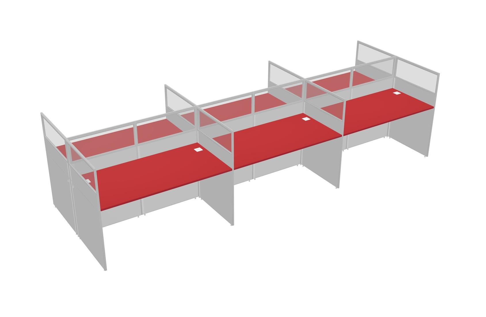 Prism Red Shared Rectangular Office Cubicle Panel System For 6 Persons