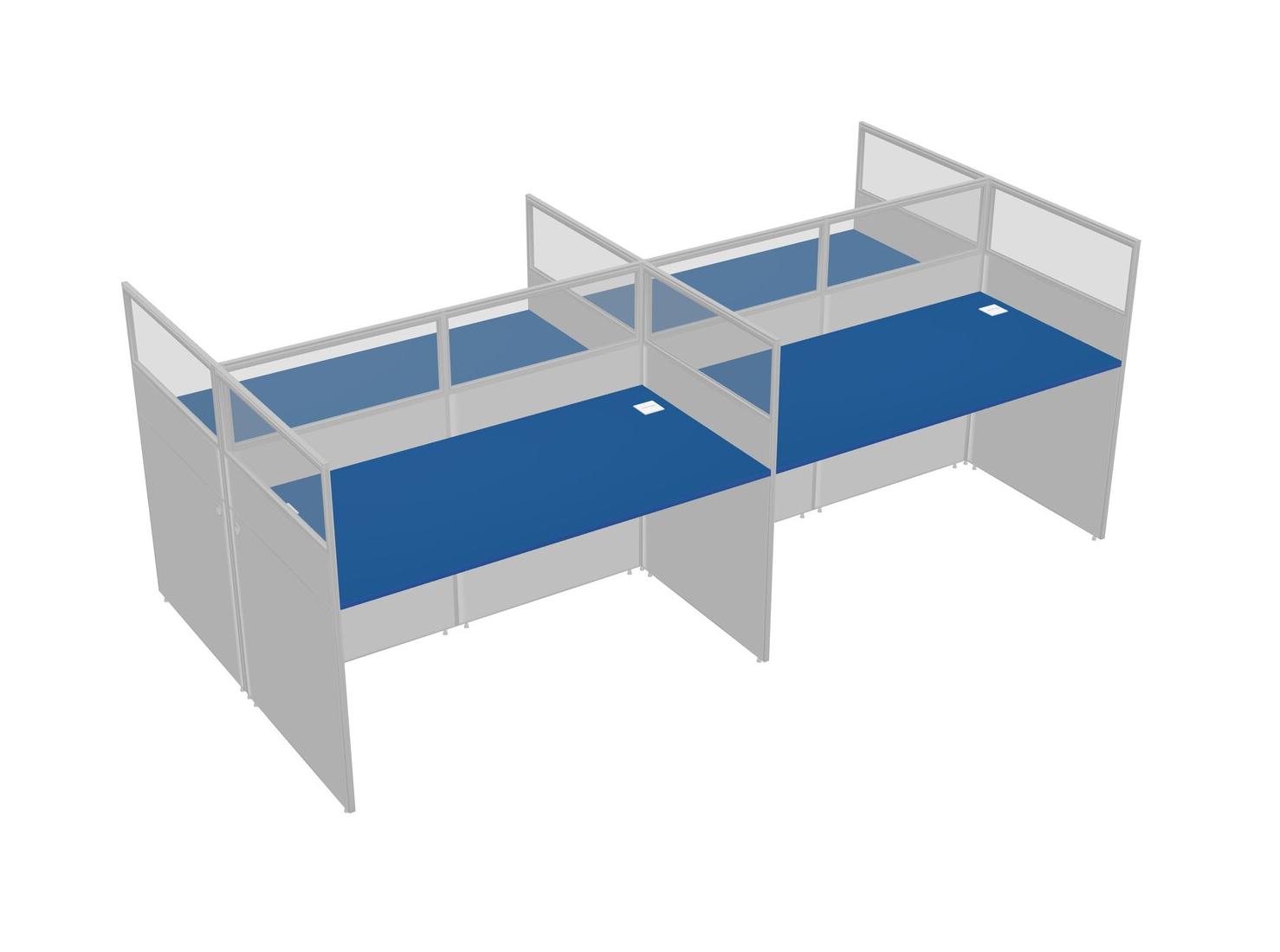 Prism Blue Shared Rectangular Office Cubicle Panel System For 4 Persons