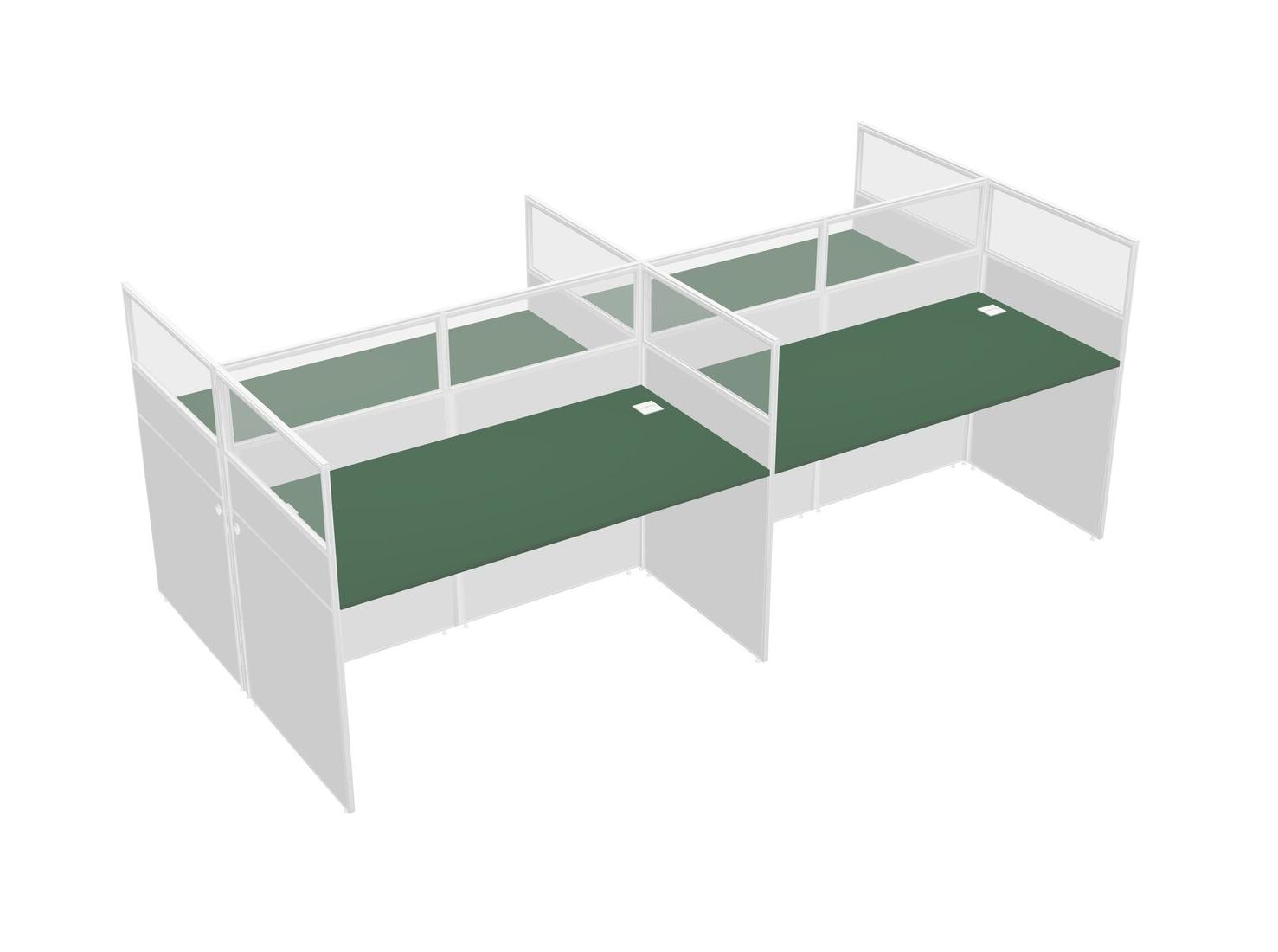 Green Shared Rectangular Office Cubicle Panel System For 4 Persons