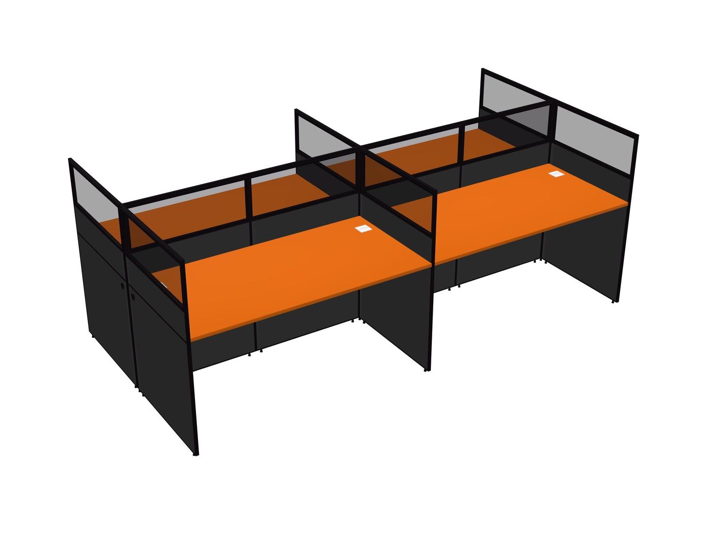 Orange Shared Rectangular Office Cubicle Panel System For 4 Persons