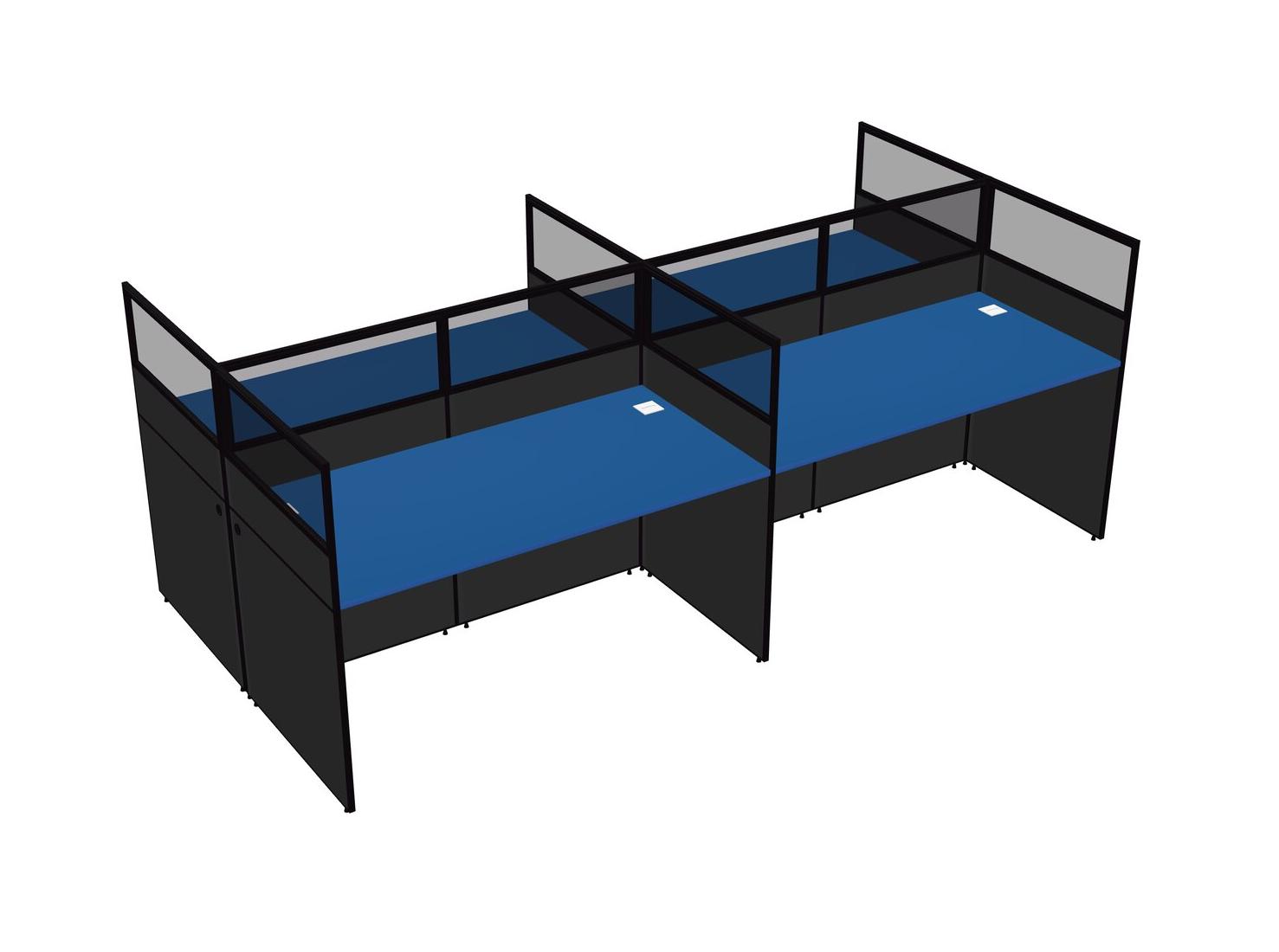 Prism Blue Shared Rectangular Office Cubicle Panel System For 4 Persons
