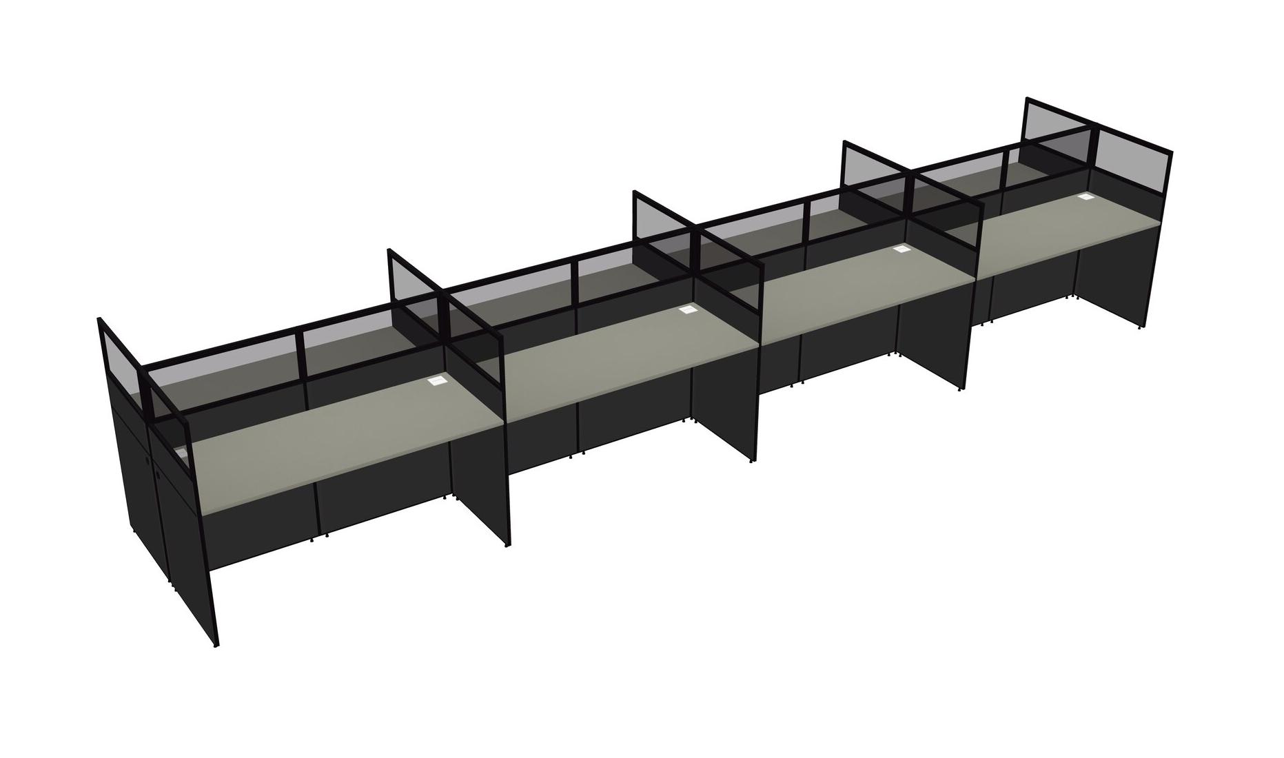 Grey Shadows Shared Rectangular Office Cubicle Panel System For 8 Persons