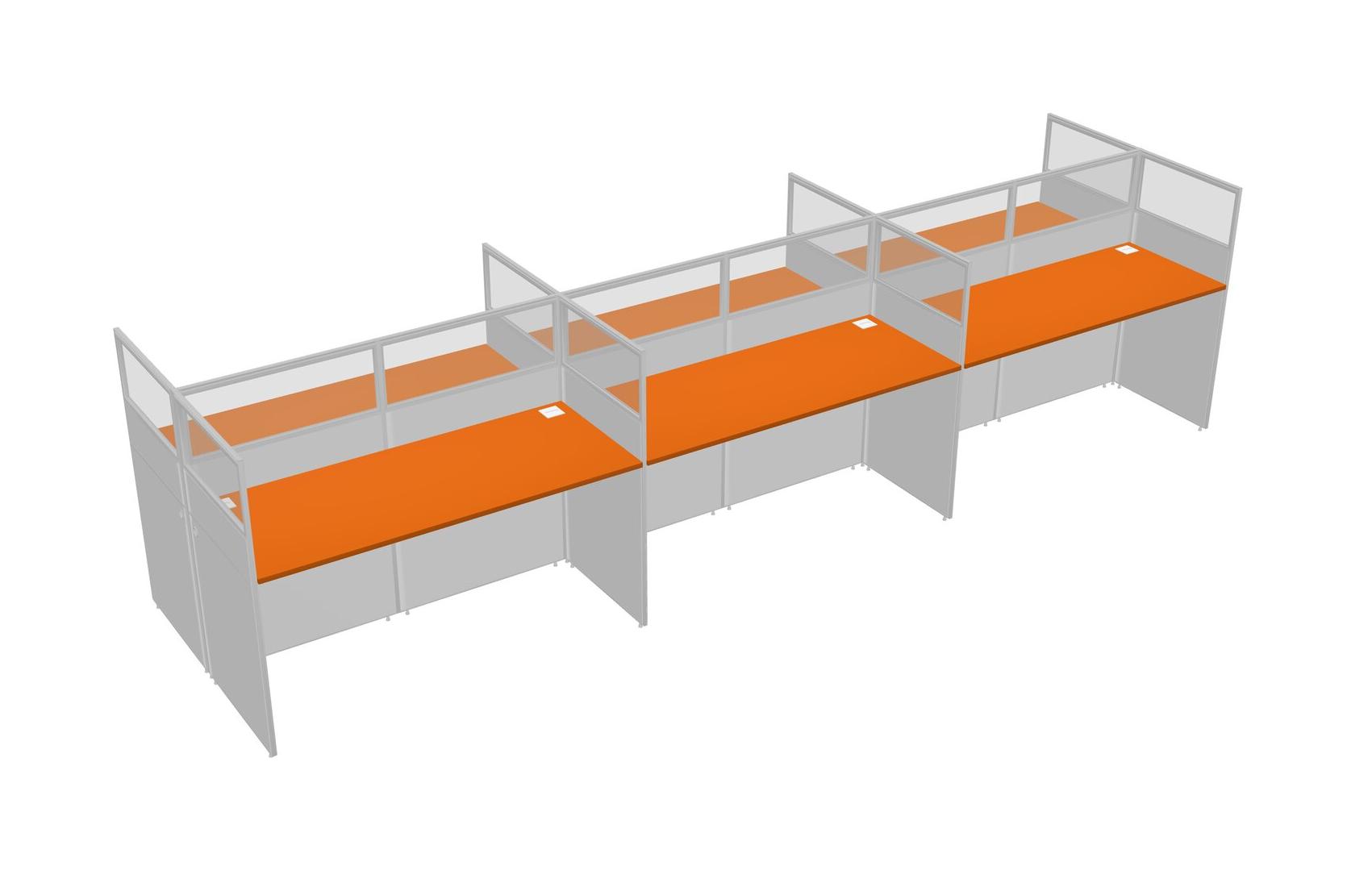 Orange Shared Rectangular Office Cubicle Panel System For 6 Persons