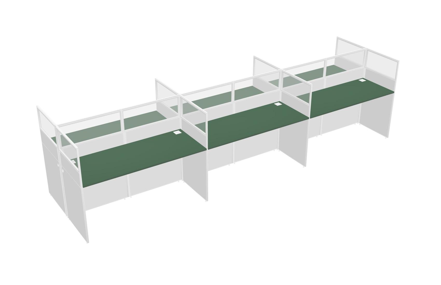 Green Shared Rectangular Office Cubicle Panel System For 6 Persons