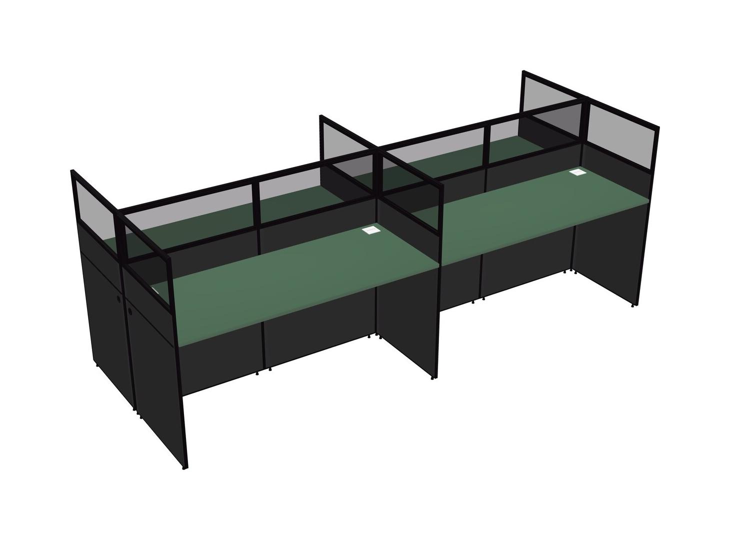 Green Shared Rectangular Office Cubicle Panel System For 4 Persons