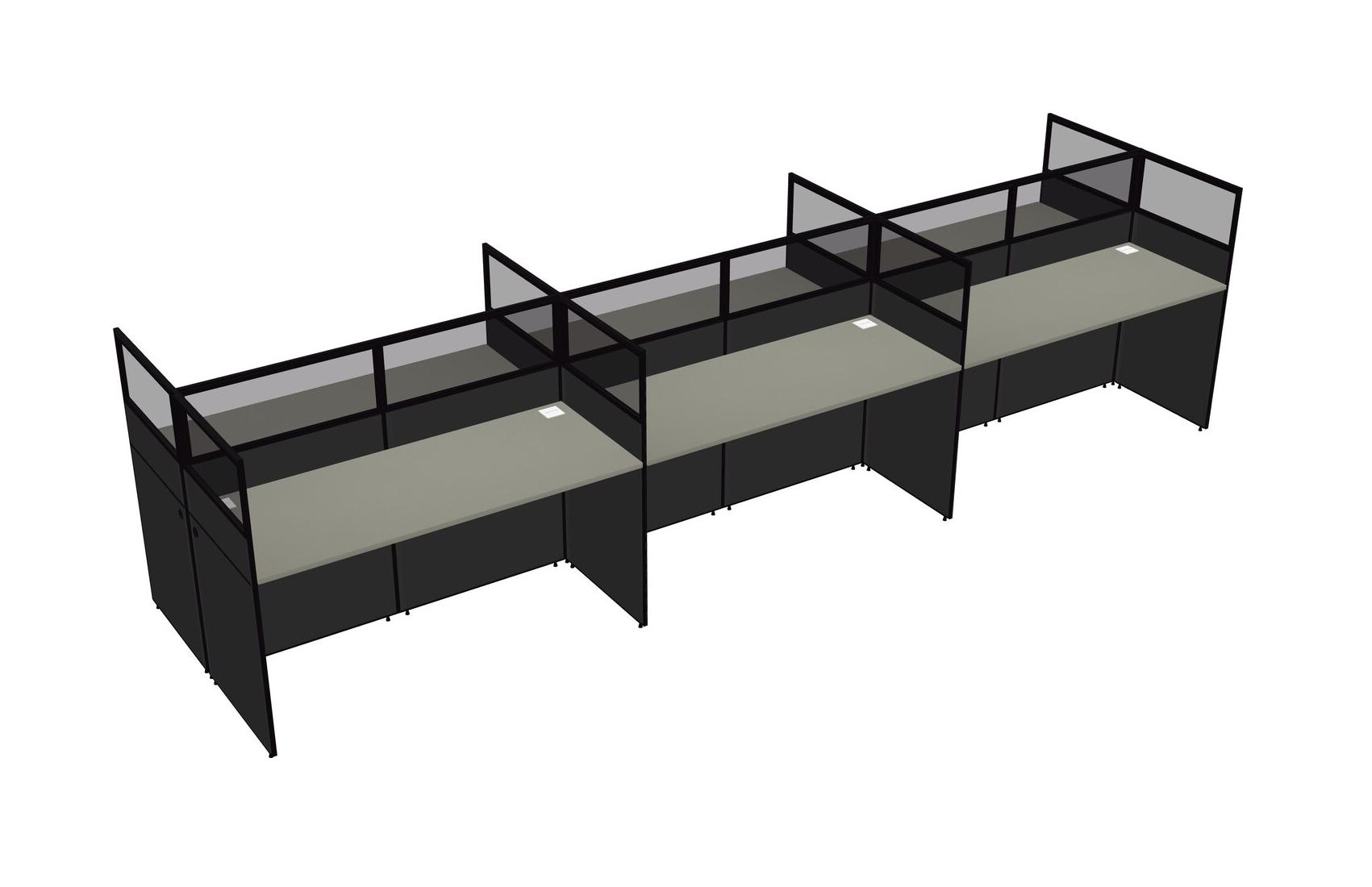 Grey Shadows Shared Rectangular Office Cubicle Panel System For 6 Persons