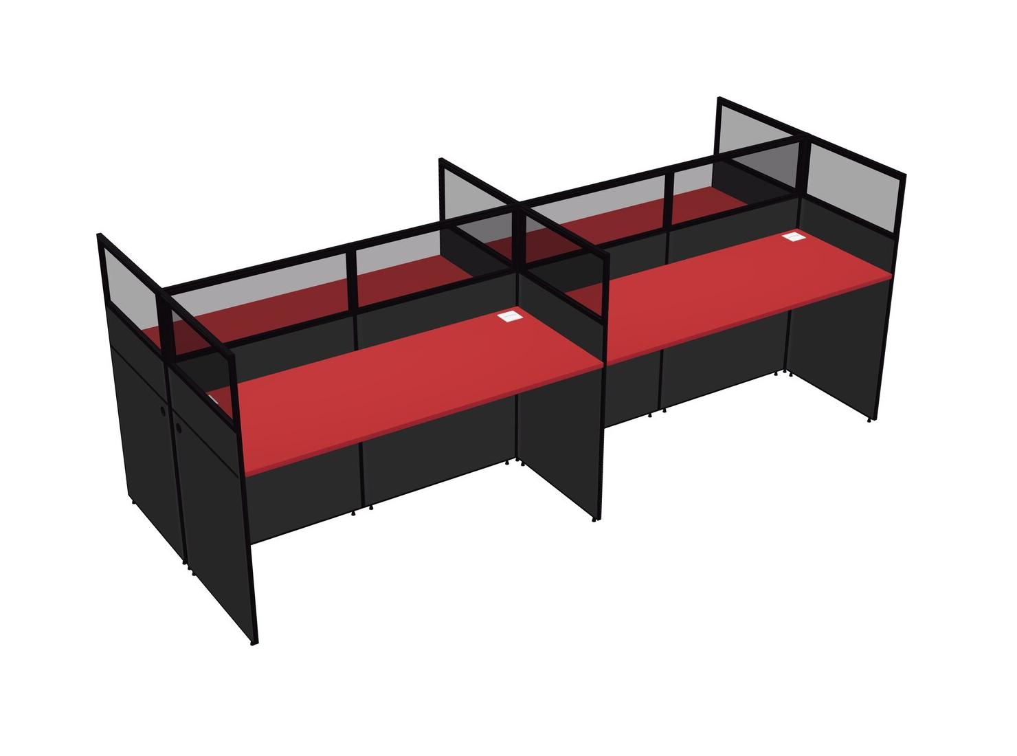Prism Red Shared Rectangular Office Cubicle Panel System For 4 Persons
