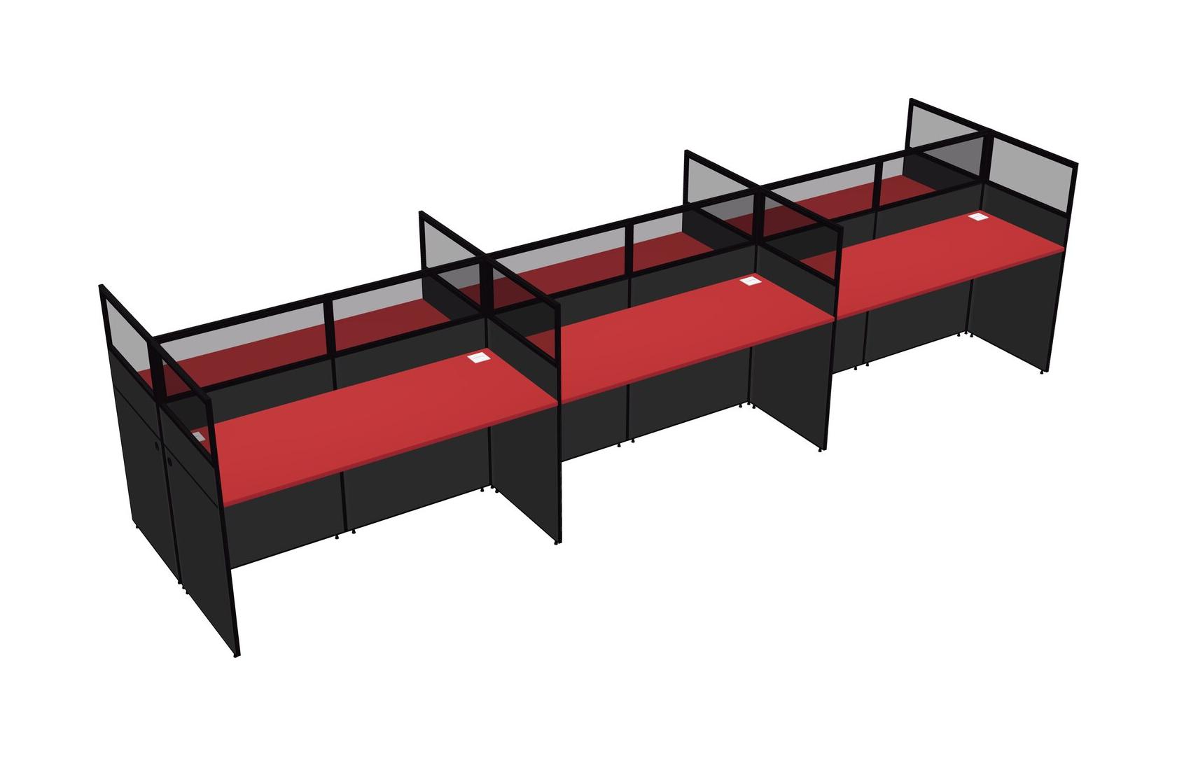 Prism Red Shared Rectangular Office Cubicle Panel System For 6 Persons