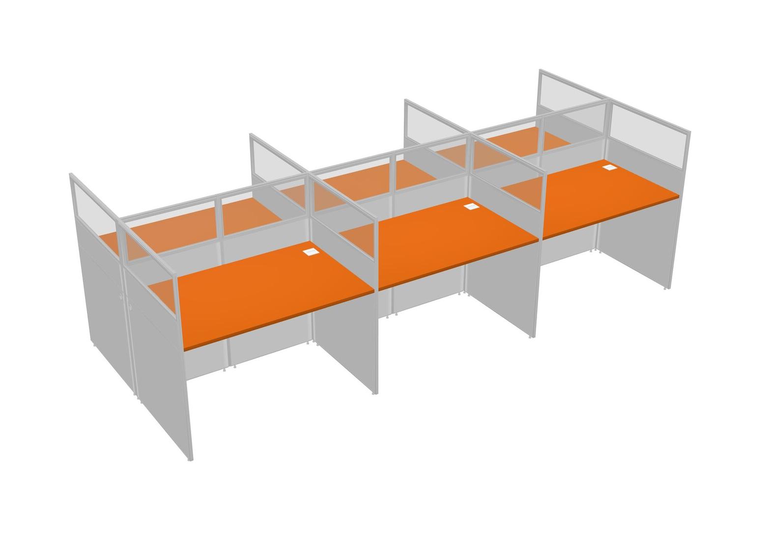 Orange Shared Rectangular Office Cubicle Panel System For 6 Persons