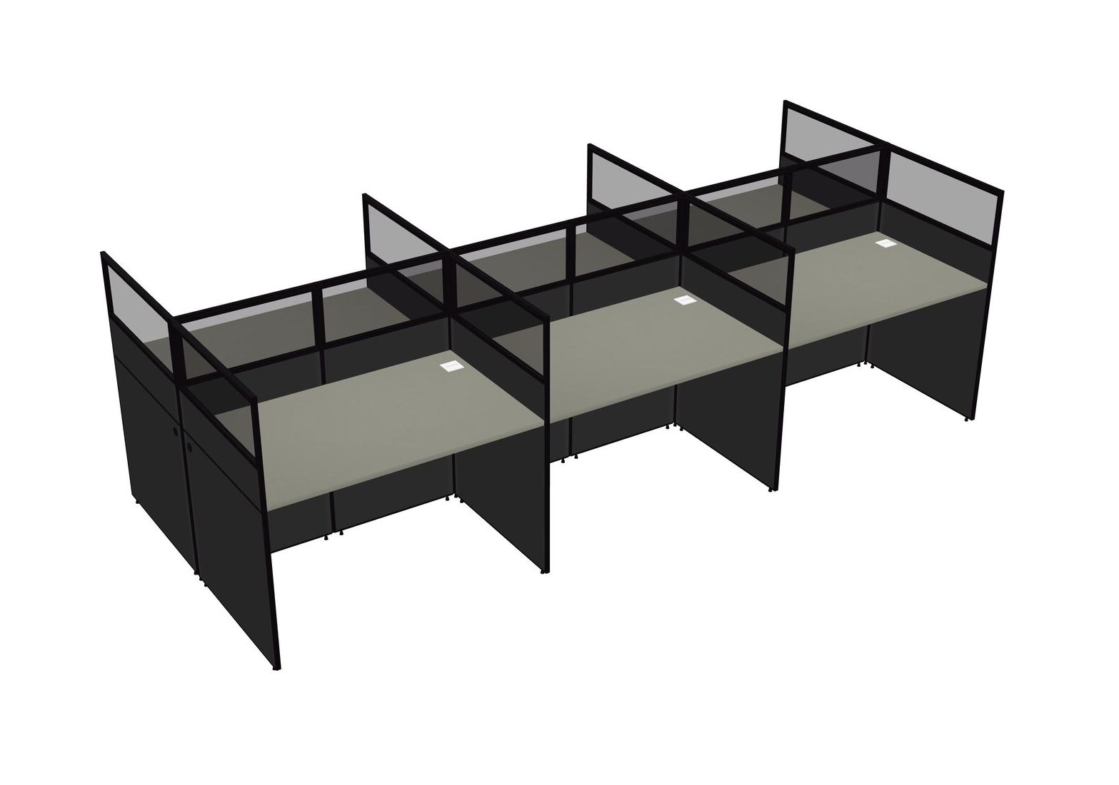 Grey Shadows Shared Rectangular Office Cubicle Panel System For 6 Persons
