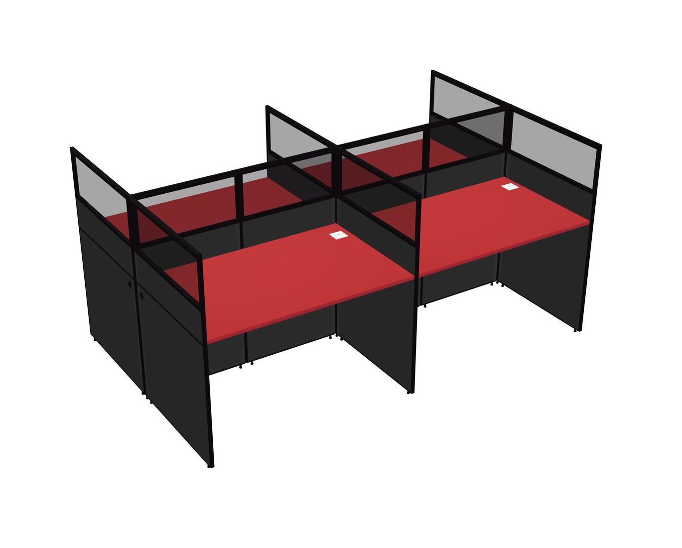 Prism Red Shared Rectangular Office Cubicle Panel System For 4 Persons