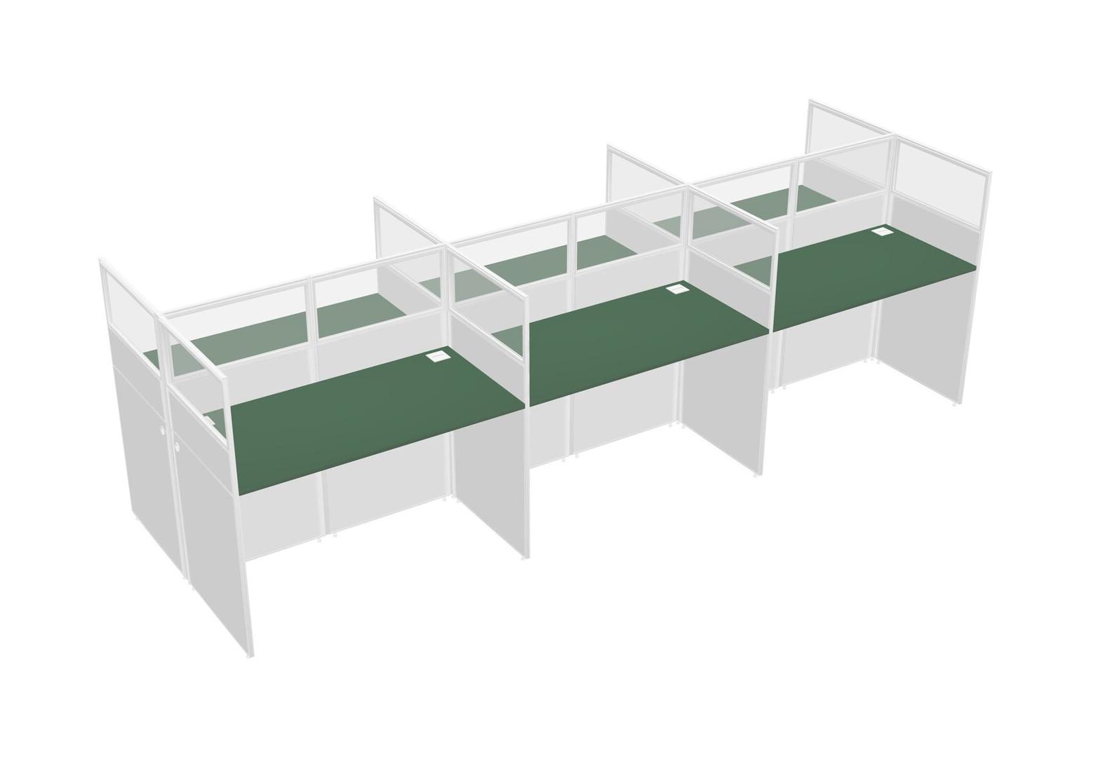 Green Shared Rectangular Office Cubicle Panel System For 6 Persons