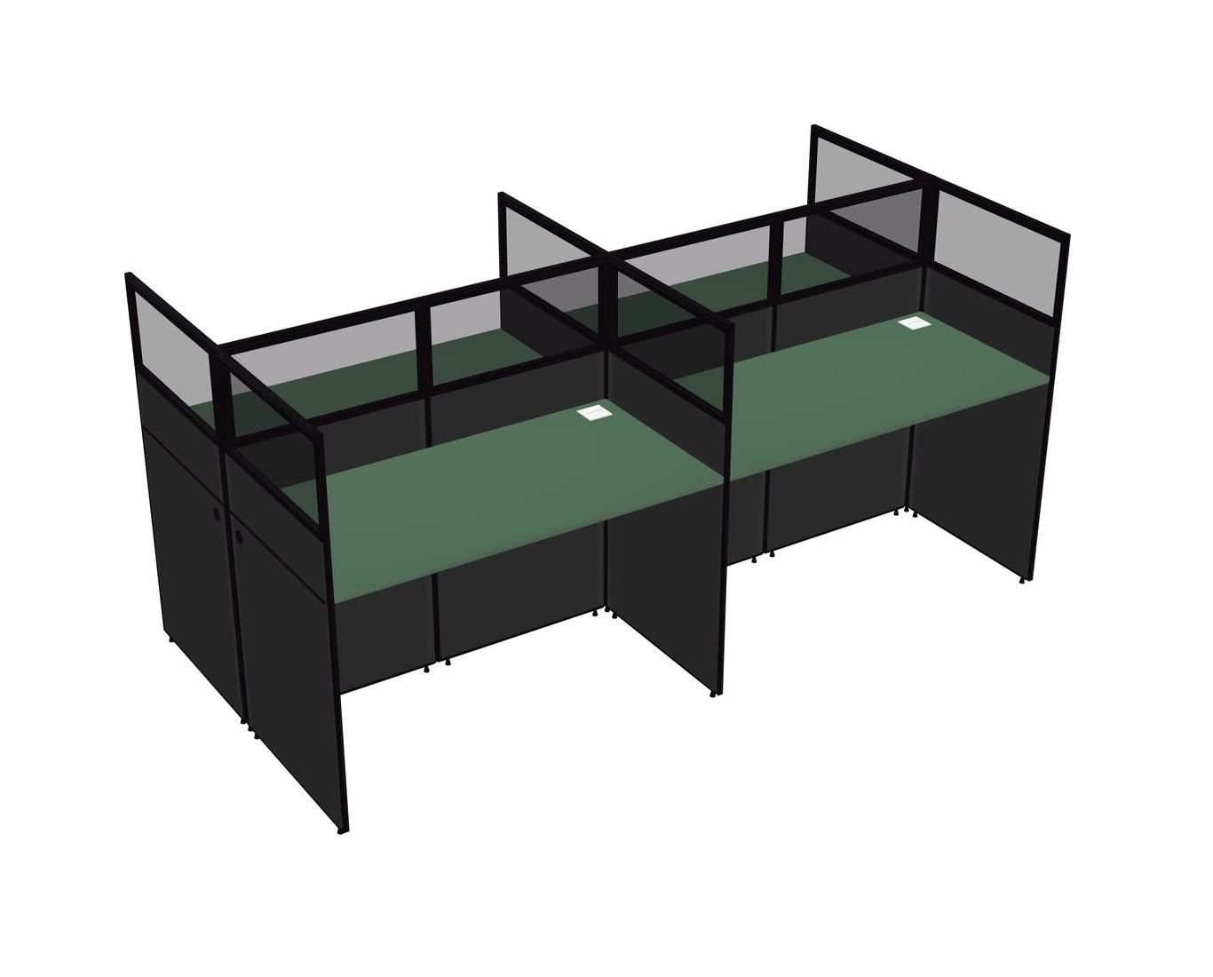 Green Shared Rectangular Office Cubicle Panel System For 4 Persons