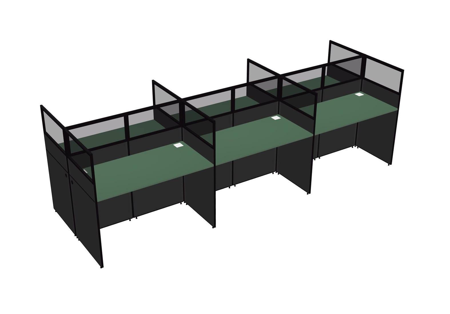 Green Shared Rectangular Office Cubicle Panel System For 6 Persons
