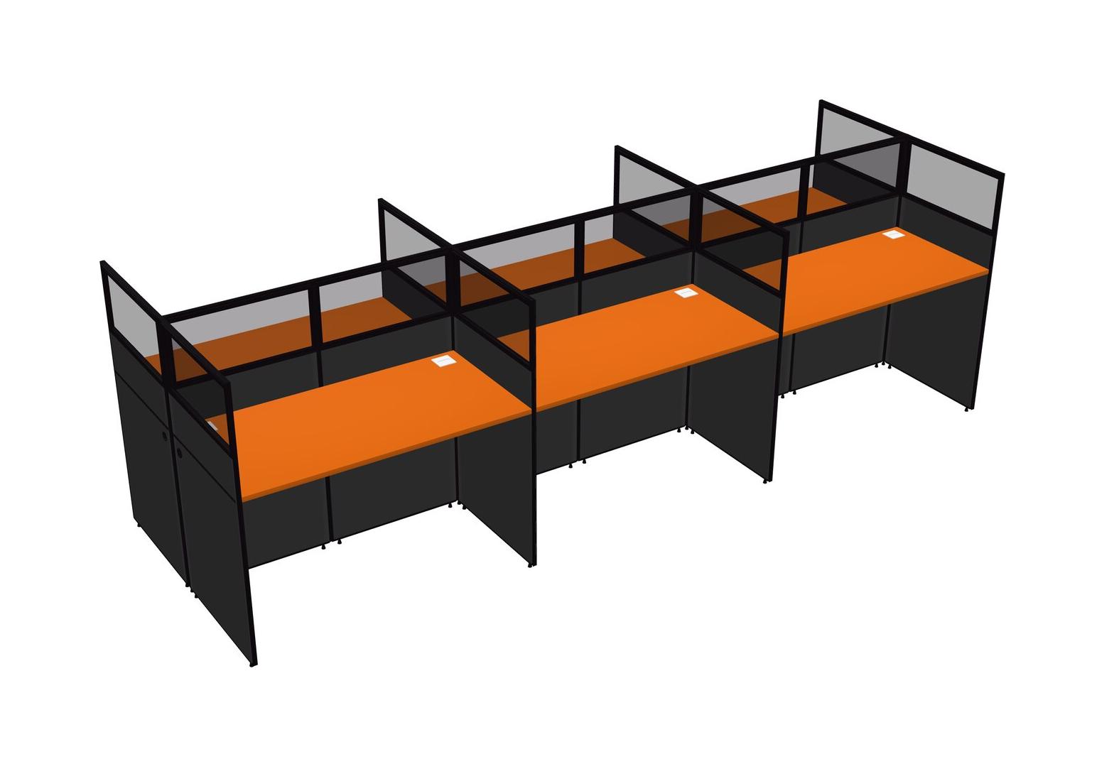 Orange Shared Rectangular Office Cubicle Panel System For 6 Persons