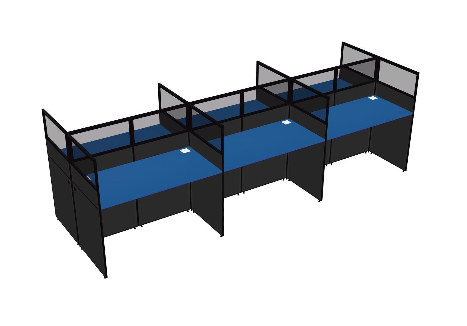 Prism Blue Shared Rectangular Office Cubicle Panel System For 6 Persons