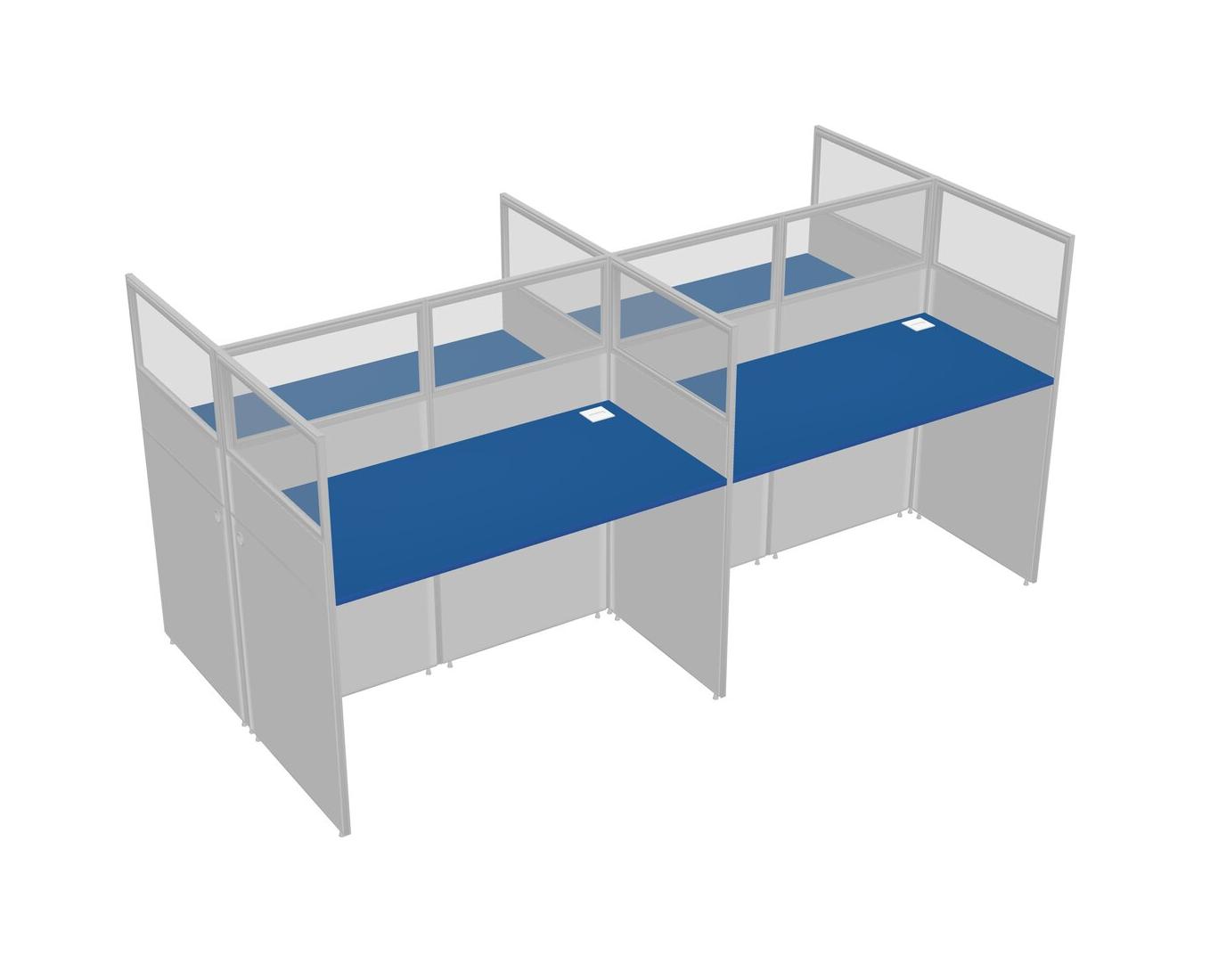 Prism Blue Shared Rectangular Office Cubicle Panel System For 4 Persons