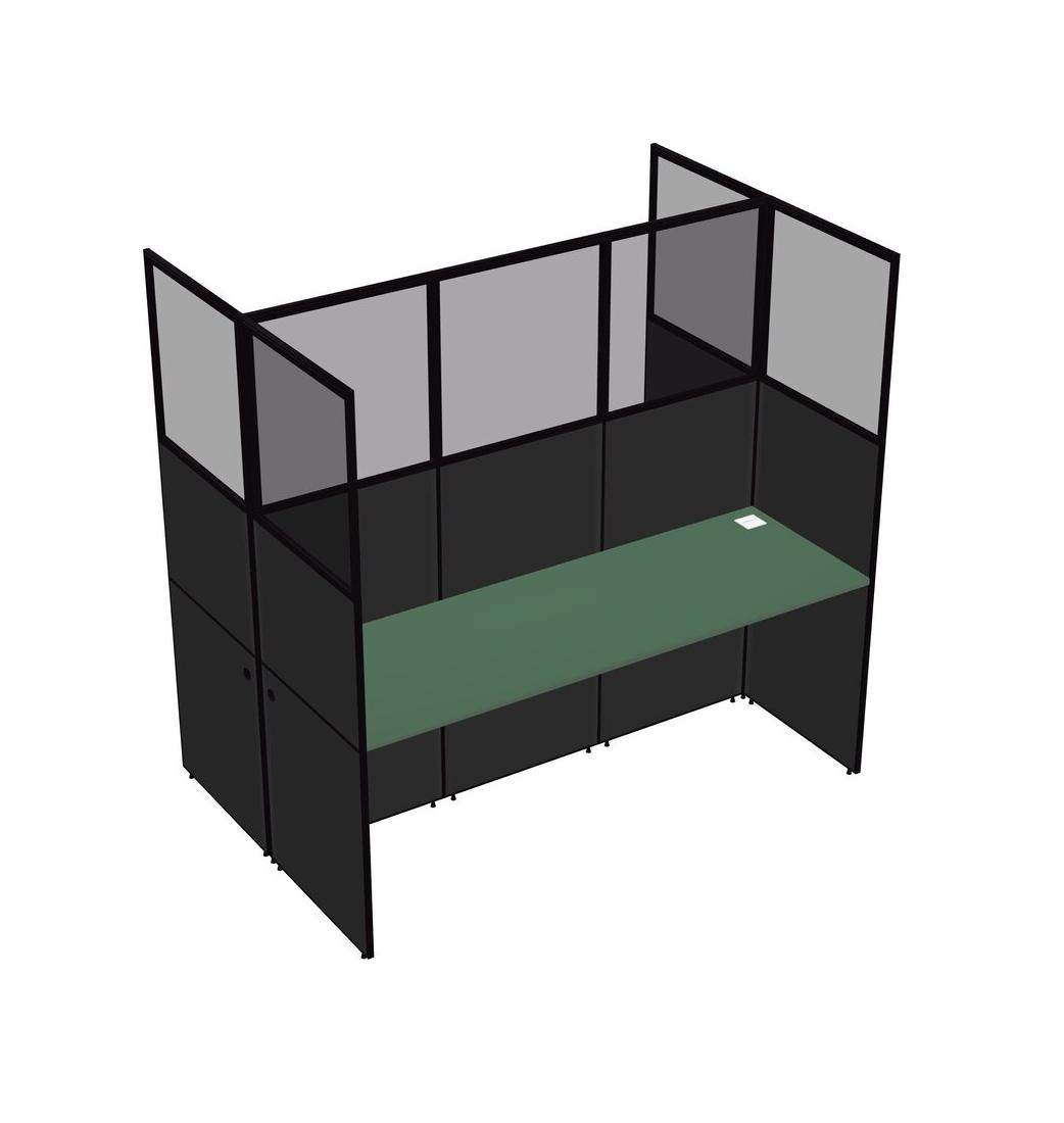 Green Shared Rectangular Office Cubicle Panel System For 2 Persons