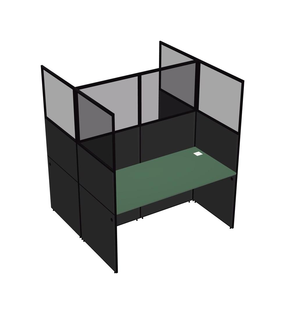 Green Shared Rectangular Office Cubicle Panel System For 2 Persons