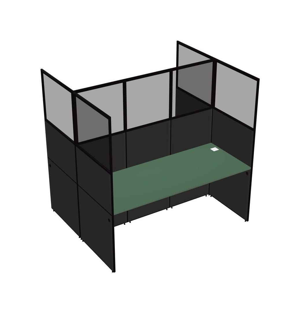 Green Shared Rectangular Office Cubicle Panel System For 2 Persons