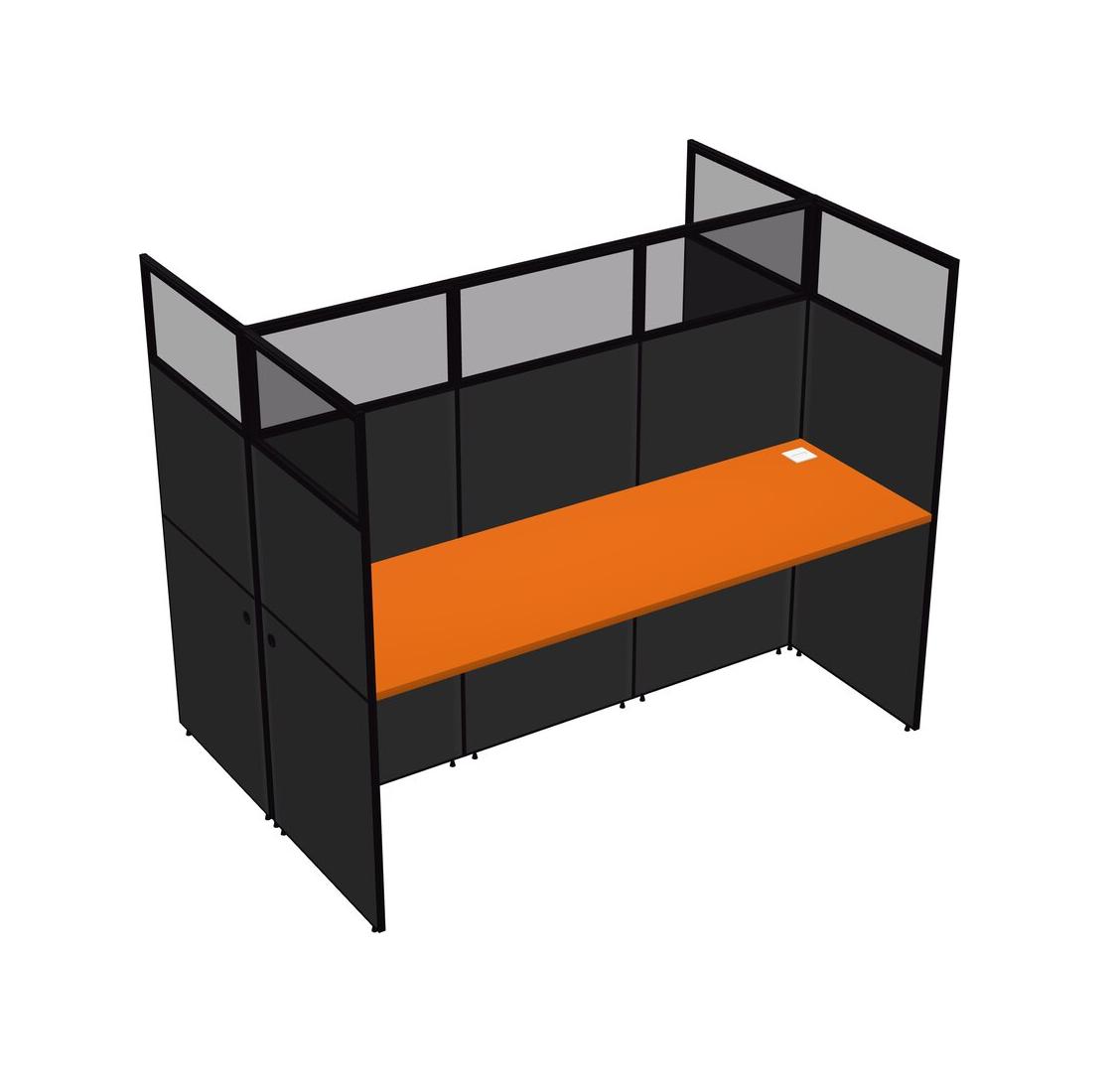 Orange Shared Rectangular Office Cubicle Panel System For 2 Persons