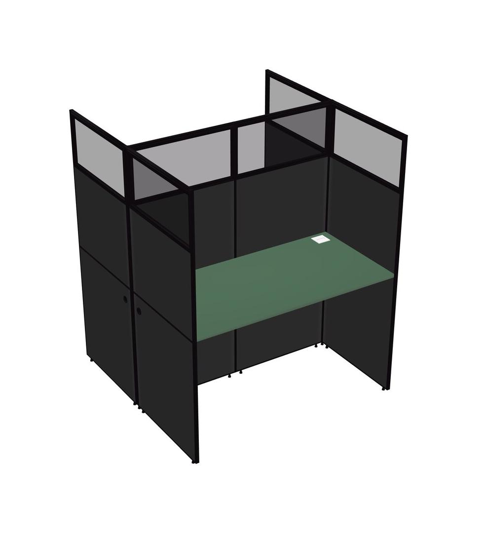 Green Shared Rectangular Office Cubicle Panel System For 2 Persons