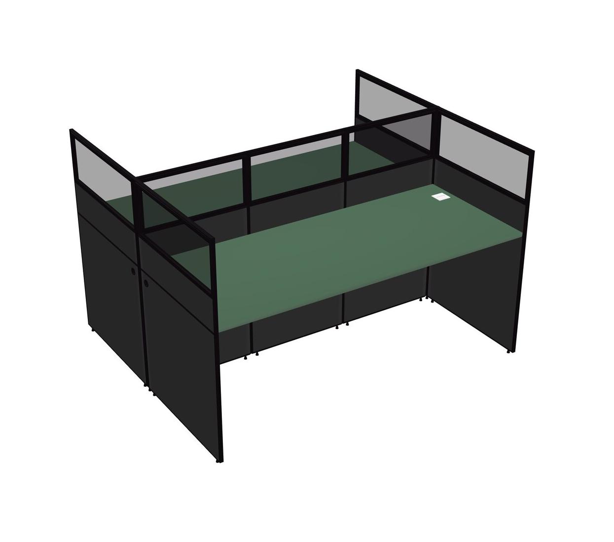 Green Shared Rectangular Office Cubicle Panel System For 2 Persons