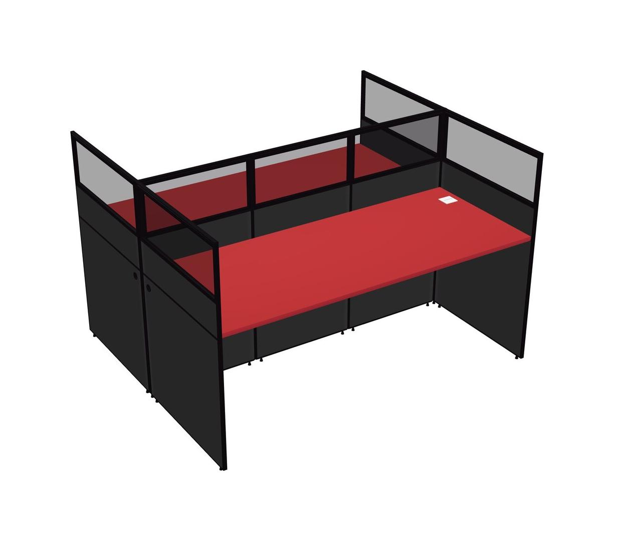 Prism Red Shared Rectangular Office Cubicle Panel System For 2 Persons