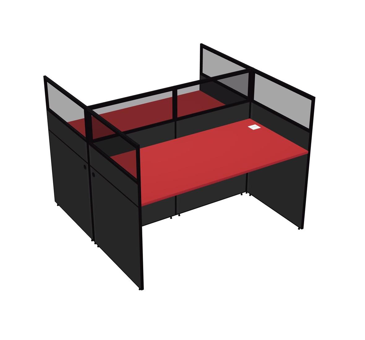 Prism Red Shared Rectangular Office Cubicle Panel System For 2 Persons