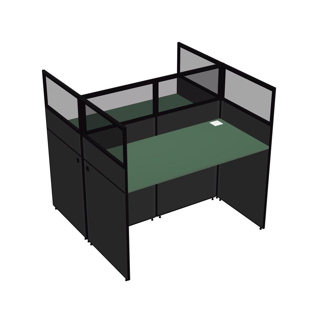Green Shared Rectangular Office Cubicle Panel System For 2 Persons