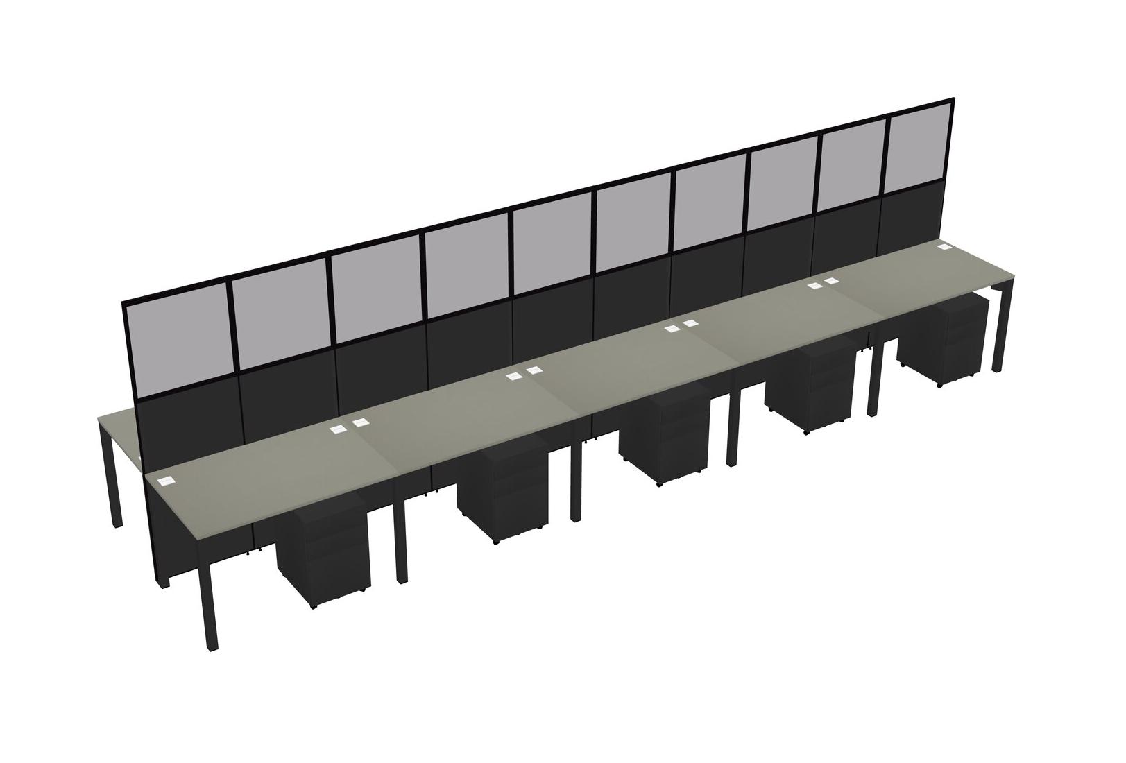 Grey Shadows Shared Rectangular Office Cubicle Panel System With Mobile Drawers For 10 Persons