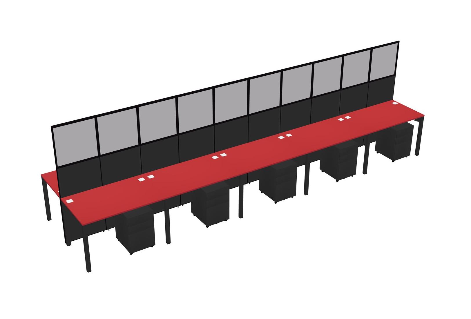 Prism Red Shared Rectangular Office Cubicle Panel System With Mobile Drawers For 10 Persons