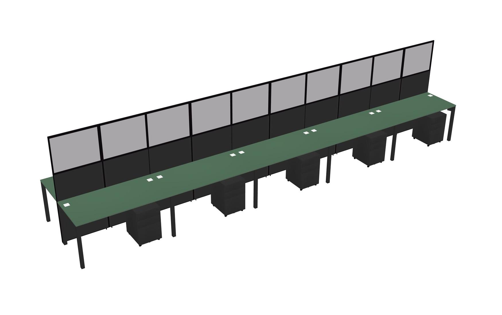 Green Shared Rectangular Office Cubicle Panel System With Mobile Drawers For 10 Persons