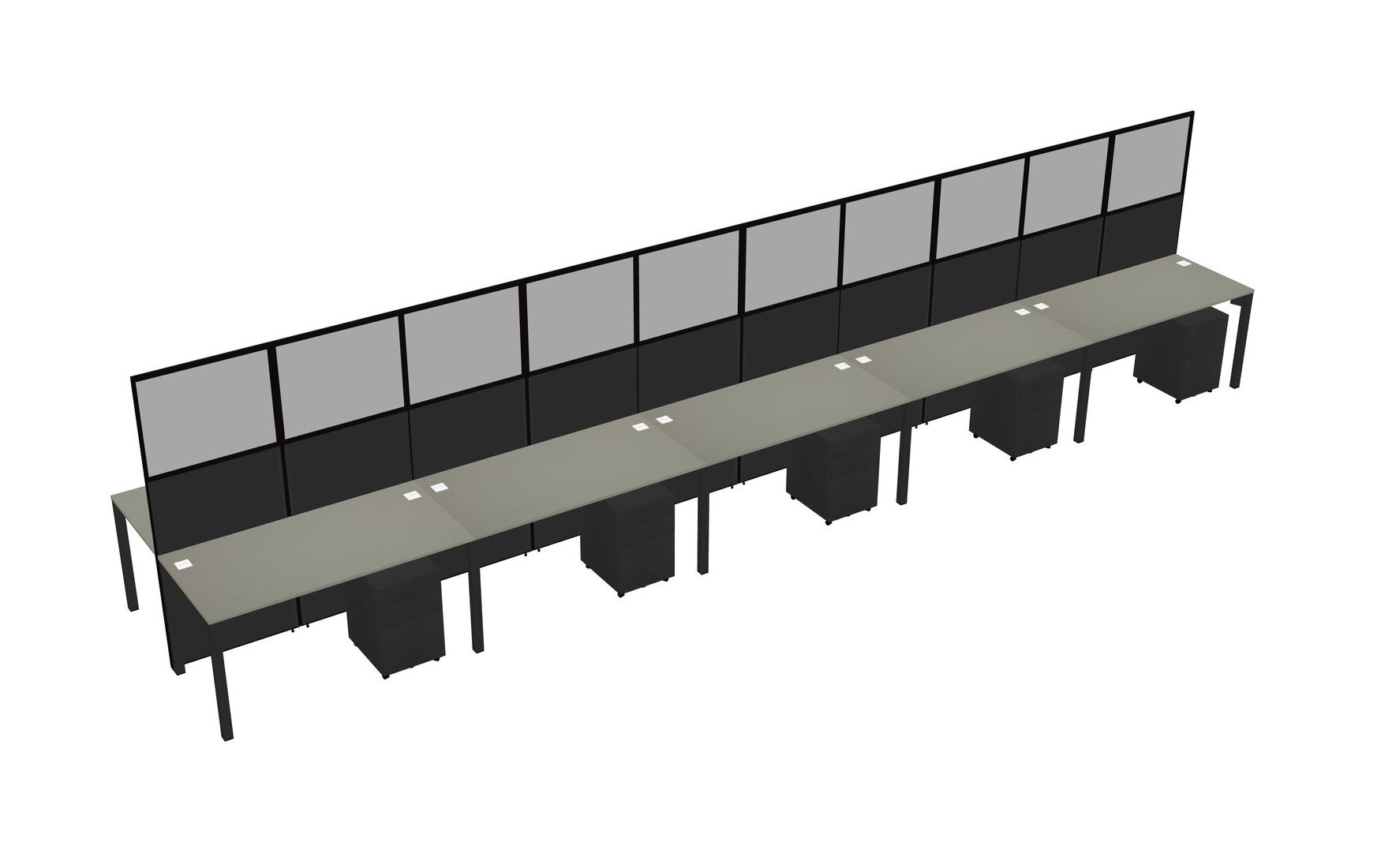 Grey Shadows Shared Rectangular Office Cubicle Panel System With Mobile Drawers For 10 Persons