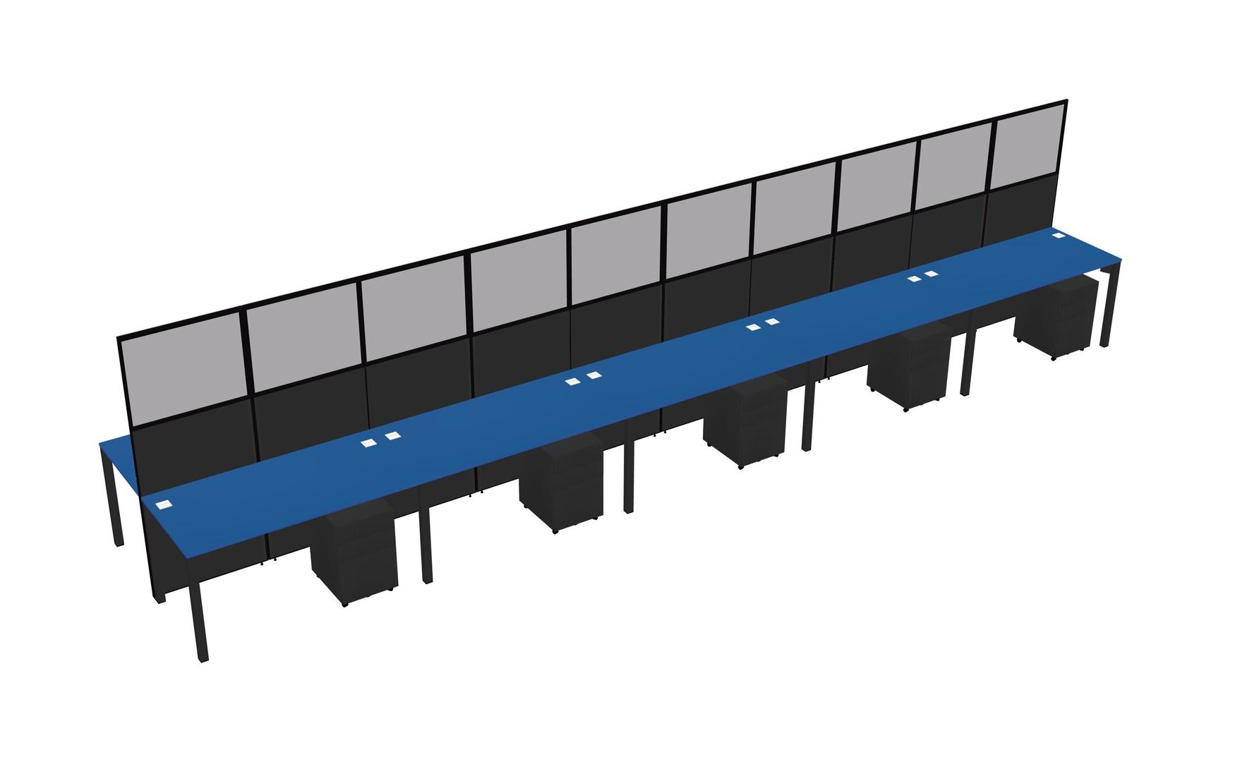 Prism Blue Shared Rectangular Office Cubicle Panel System With Mobile Drawers For 10 Persons