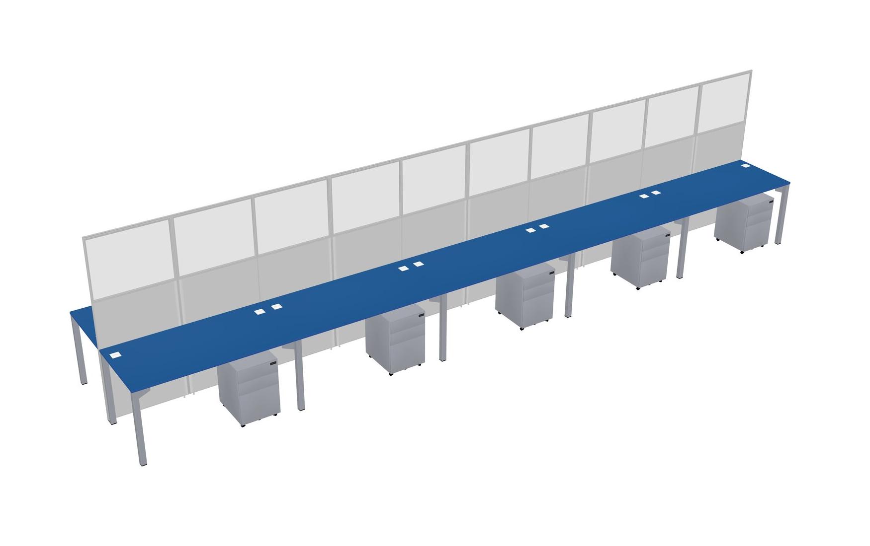 Prism Blue Shared Rectangular Office Cubicle Panel System With Mobile Drawers For 10 Persons