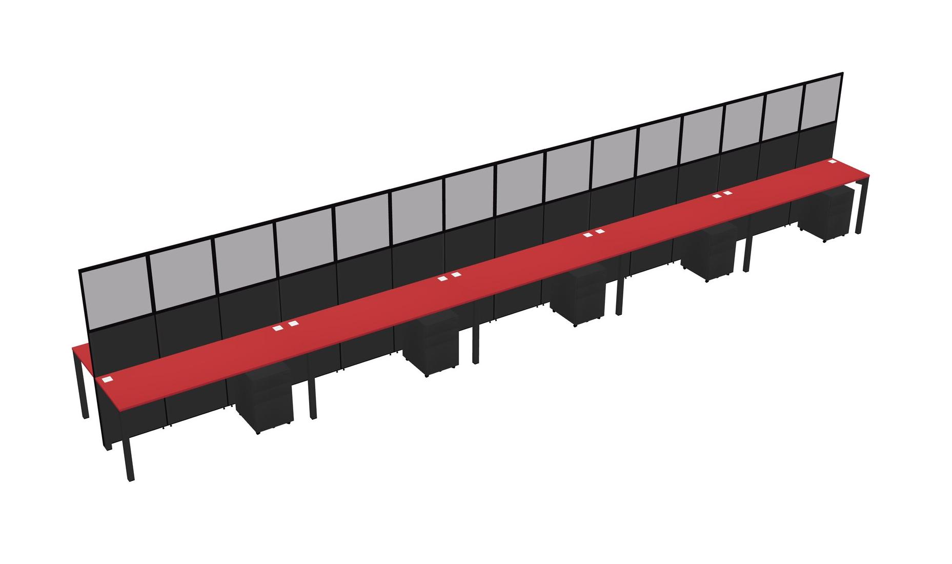 Prism Red Shared Rectangular Office Cubicle Panel System With Mobile Drawers For 10 Persons