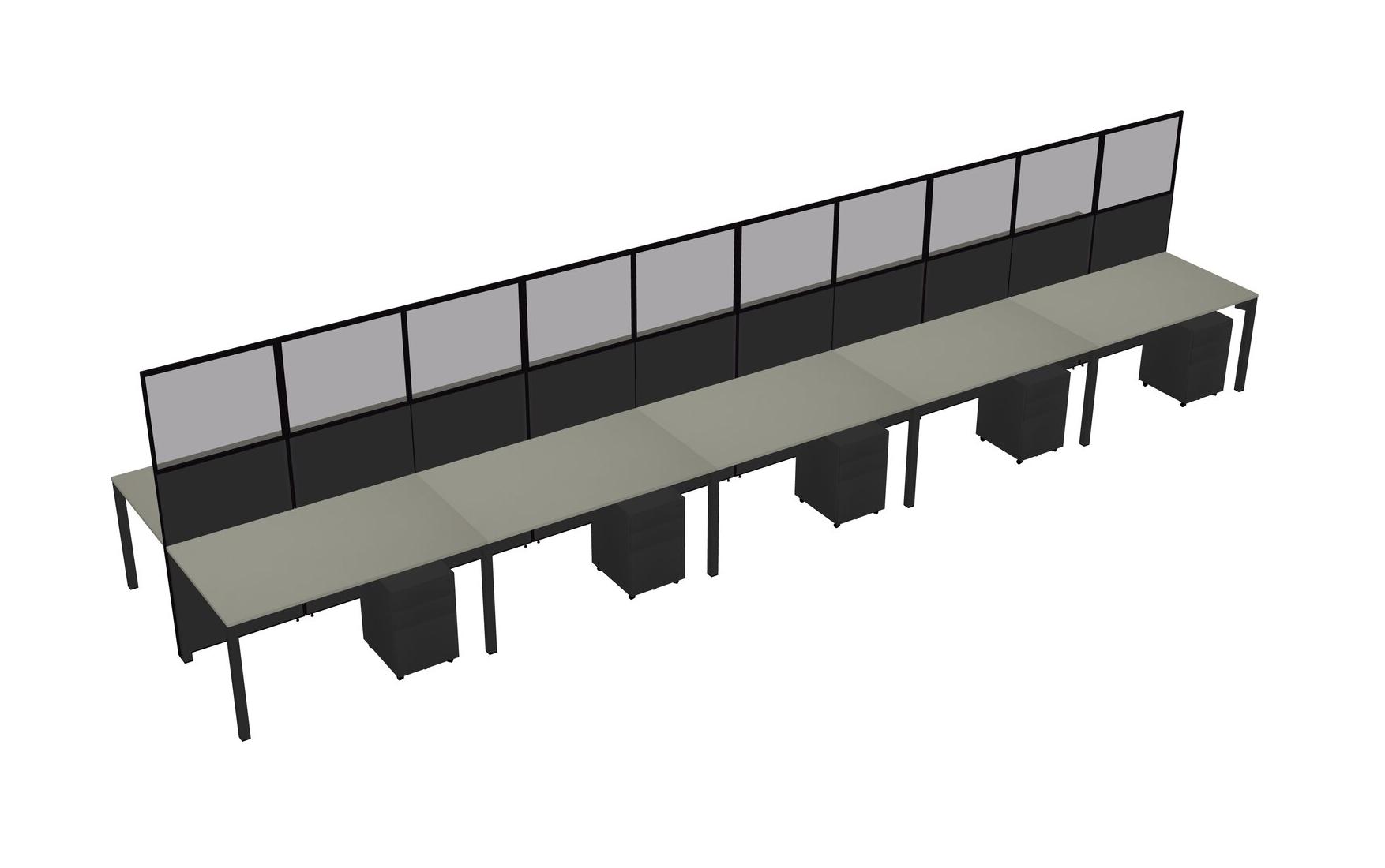 Grey Shadows Shared Rectangular Office Cubicle Panel System With Mobile Drawers For 10 Persons