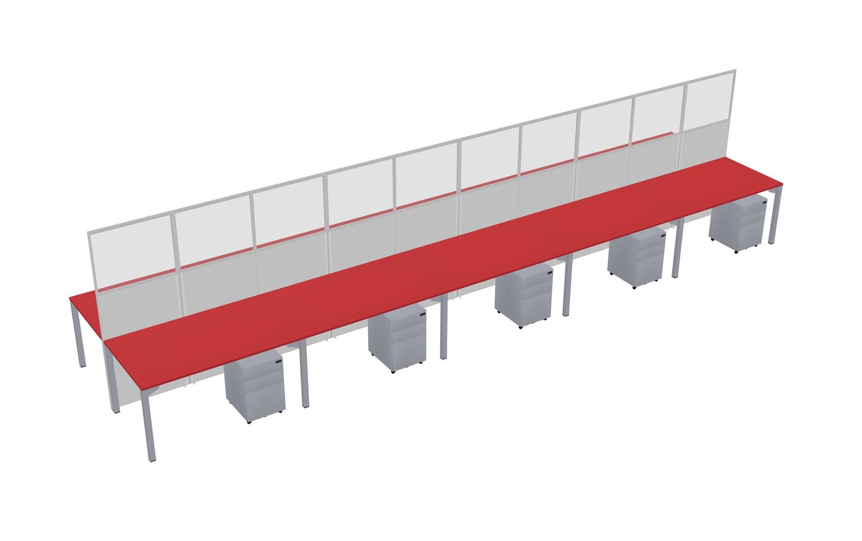 Prism Red Shared Rectangular Office Cubicle Panel System With Mobile Drawers For 10 Persons