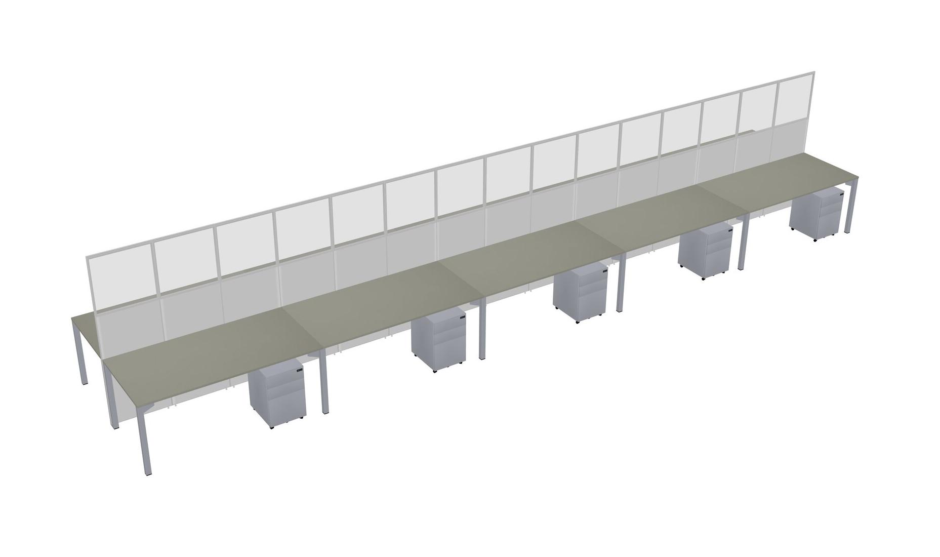 Grey Shadows Shared Rectangular Office Cubicle Panel System With Mobile Drawers For 10 Persons
