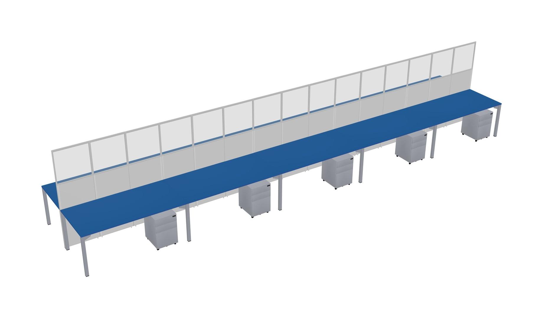 Prism Blue Shared Rectangular Office Cubicle Panel System With Mobile Drawers For 10 Persons