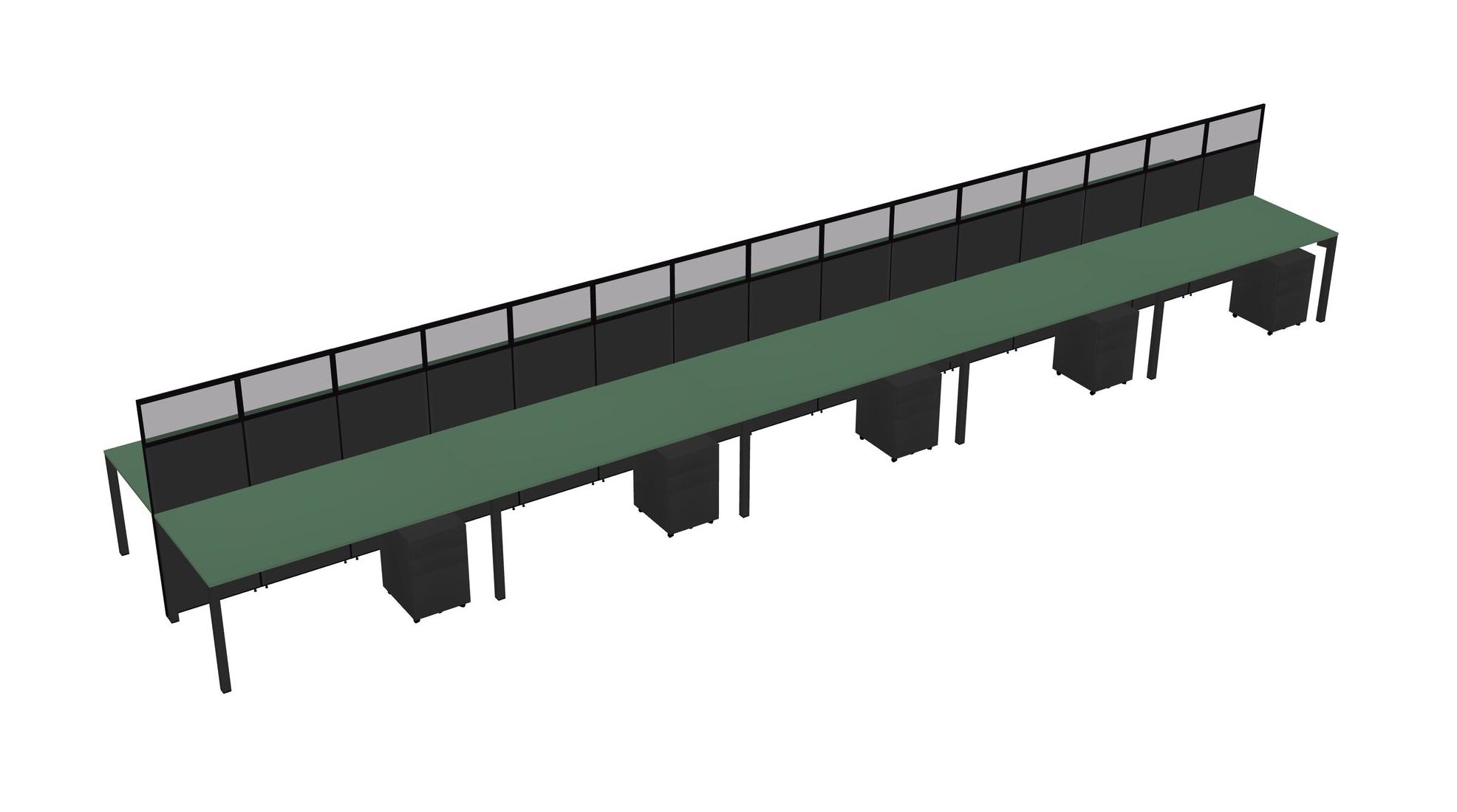 Green Shared Rectangular Office Cubicle Panel System With Mobile Drawers For 10 Persons