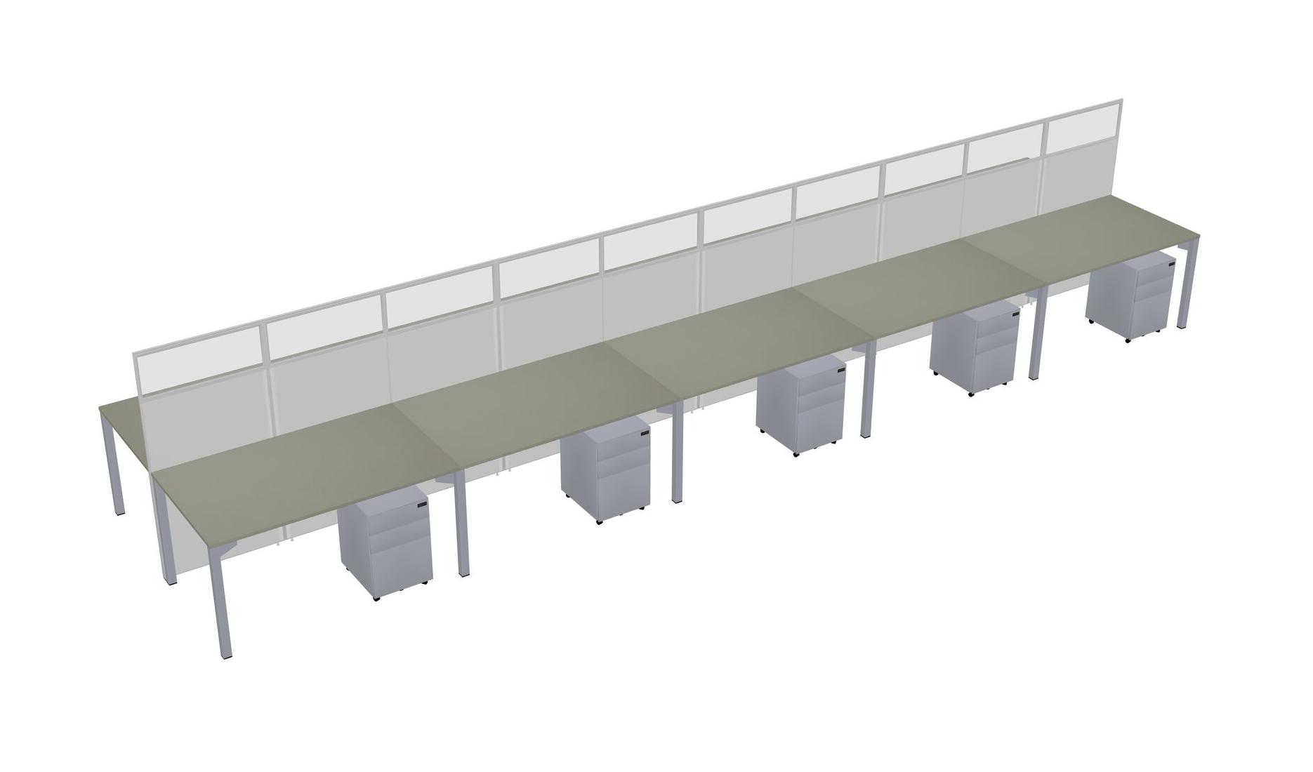 Grey Shadows Shared Rectangular Office Cubicle Panel System With Mobile Drawers For 10 Persons