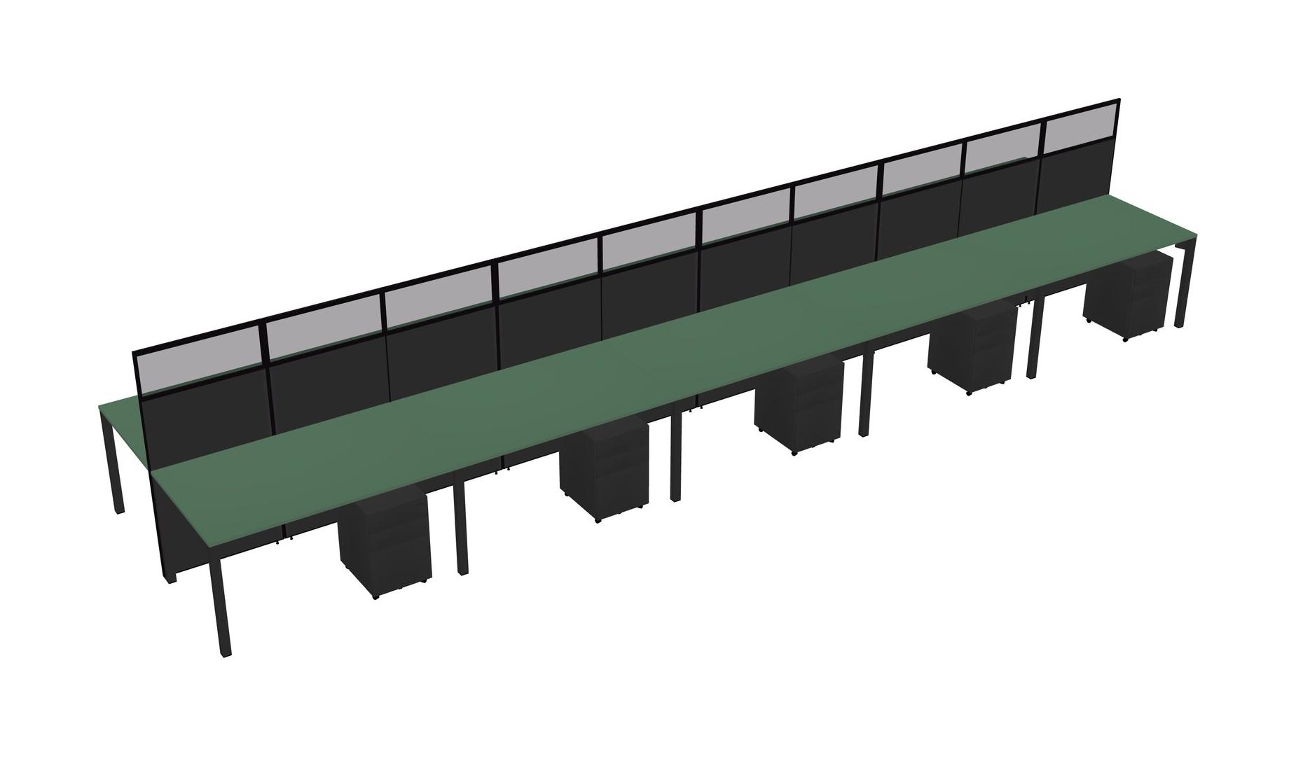 Green Shared Rectangular Office Cubicle Panel System With Mobile Drawers For 10 Persons