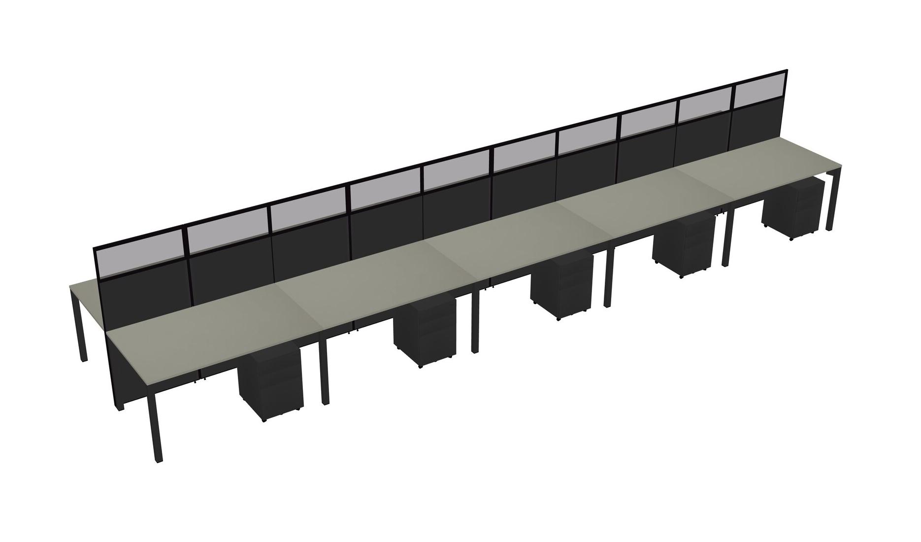 Grey Shadows Shared Rectangular Office Cubicle Panel System With Mobile Drawers For 10 Persons