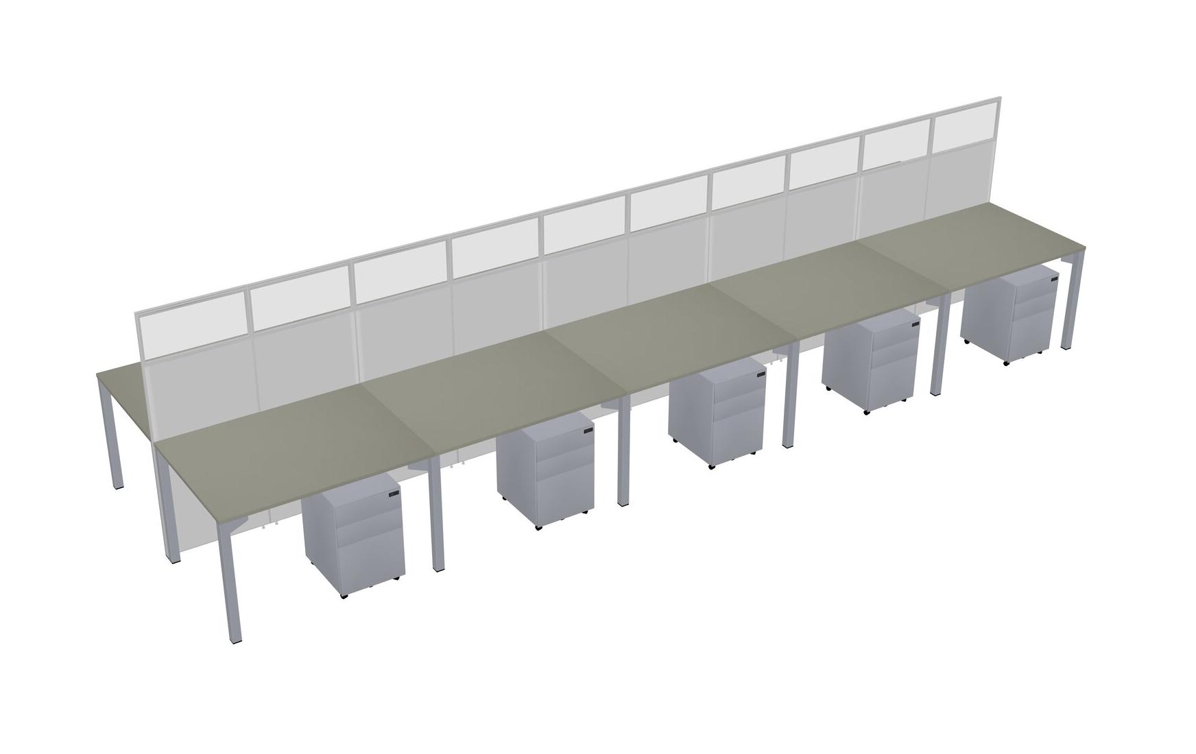 Grey Shadows Shared Rectangular Office Cubicle Panel System With Mobile Drawers For 10 Persons