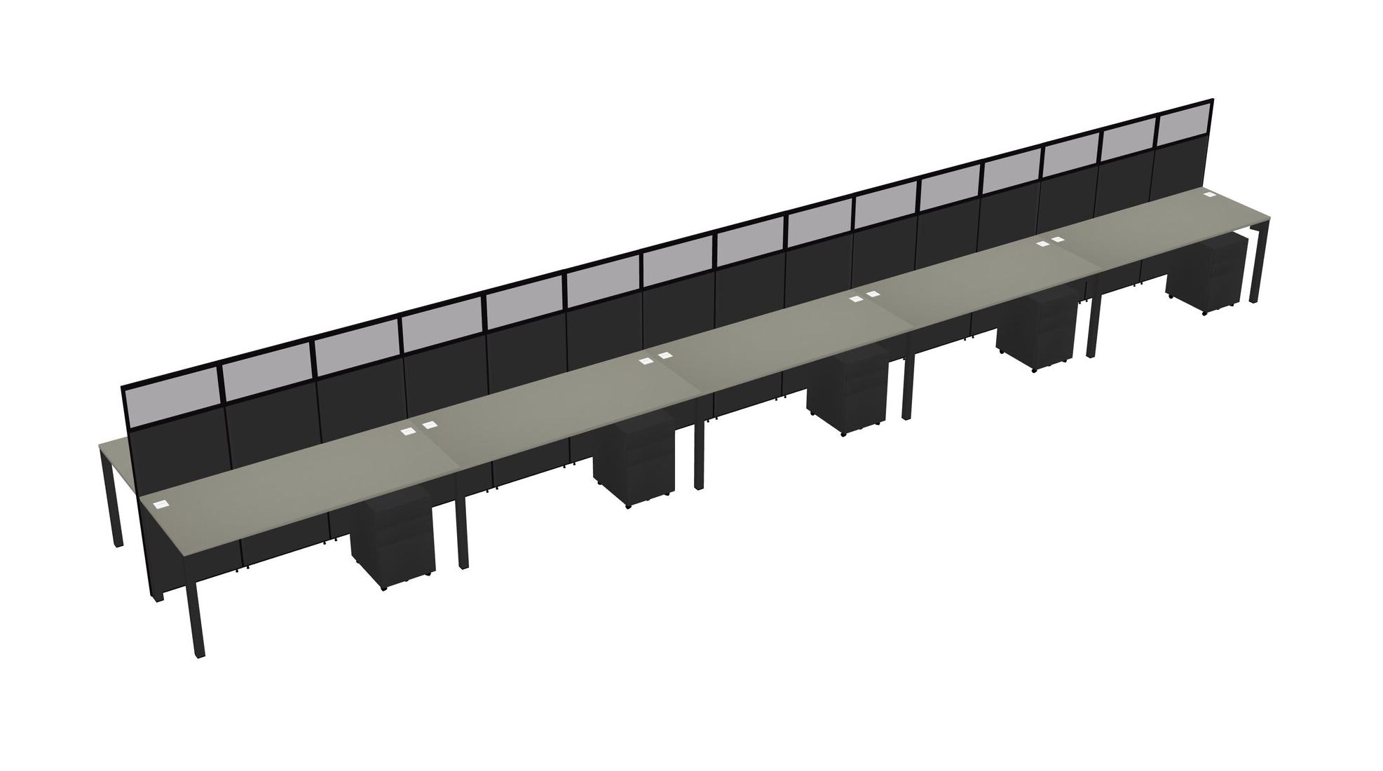 Grey Shadows Shared Rectangular Office Cubicle Panel System With Mobile Drawers For 10 Persons